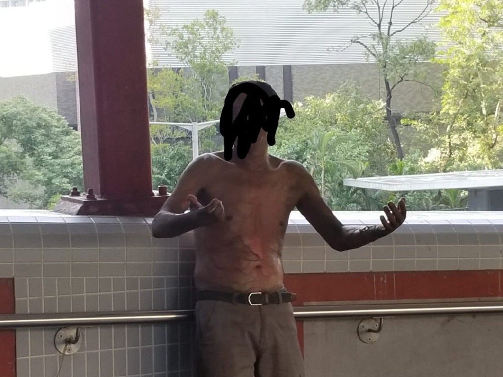 香港《南华早报》称,被火烧的男子全身烧伤面积达28%,为2级烧伤,主要集中在胸部和手臂,目前正在香港威尔斯亲王医院接受治疗。