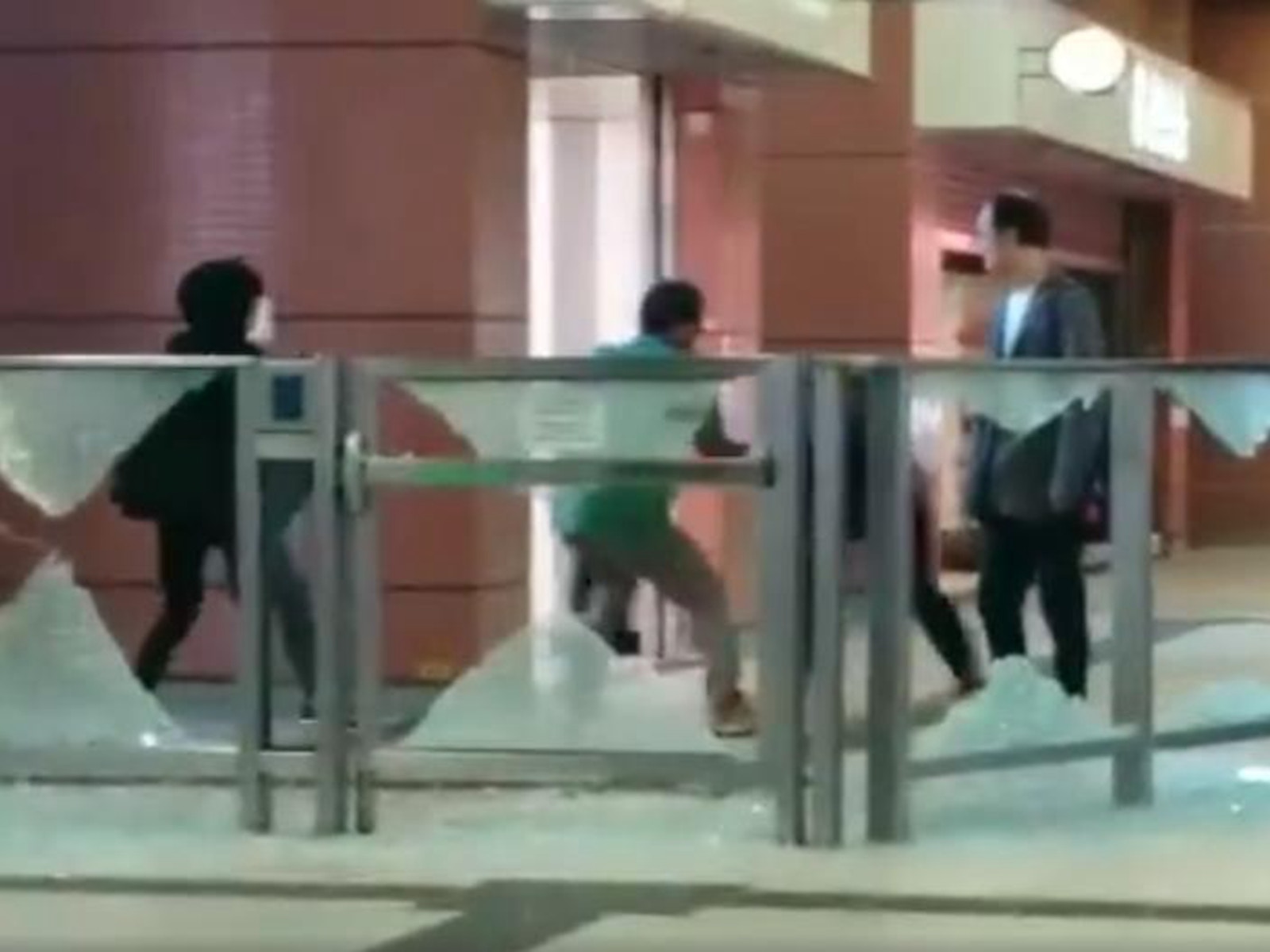 最新一段视频显示,被烧伤男子在此前与穿黑衣的示威者扭打在一起。(微博视频截图)